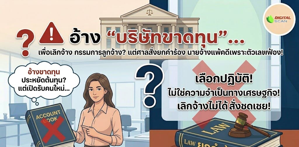 🛡️ อาวุธนายจ้าง: เมื่อ “ตำแหน่งหน้าที่” กลายเป็นบรรทัดฐานความรับผิดชอบทางกฎหมาย หนึ่งในกรณีที่สร้างความปวดหัวให้นายจ้างคือ พนักงานระดับสูงหรือผู้เชี่ยวชาญทำผิดระเบียบเสียเอง โดยเฉพาะกรณีการแอบติดตั้งกล้องวงจรปิดในสำนักงาน คำพิพากษาศาลอุทธรณ์คดีชำนาญพิเศษที่ 3280/2567 ได้วางแนวทางที่เป็นประโยชน์ต่อนายจ้างไว้อย่างน่าสนใจครับ ✅ บทเรียนสำคัญที่นายจ้างได้รับจากคดีนี้: มาตรฐานความรับผิดชอบตามตำแหน่ง: ศาลมองว่าผู้จัดการฝ่ายไอทีคือผู้ที่รู้กฎระเบียบเรื่องระบบความปลอดภัยดีที่สุด การฝ่าฝืนเสียเองถือเป็นการ “ปฏิบัติหน้าที่ไม่สมแก่หน้าที่” ทำให้นายจ้างหมดความไว้วางใจ สิทธิ์ในการไม่จ่ายค่าตกใจ: เมื่อพนักงานระดับสูงทำผิดในเรื่องที่ตนควรรับผิดชอบ นายจ้างสามารถเลิกจ้างได้ทันทีโดยไม่ต้องบอกกล่าวล่วงหน้า และมีสิทธิ์ไม่ต้องจ่ายค่าจ้างแทนการบอกกล่าวล่วงหน้า (ค่าตกใจ) ตามมาตรา 583 แห่งประมวลกฎหมายแพ่งและพาณิชย์ การเตือนต้องเป็นหนังสือ: คดีนี้สอนให้นายจ้างรู้ว่า “การเตือนด้วยปากเปล่า” ไม่สามารถนำมาอ้างเป็นการทำผิดซ้ำคำเตือนได้ในชั้นศาล การทำหนังสือเตือนอย่างเป็นลายลักษณ์อักษรจึงเป็นอาวุธที่ขาดไม่ได้ ⚠️ จุดที่นายจ้างต้องระวัง (ความเสี่ยงที่ยังหลงเหลือ) ค่าชดเชยตามอายุงานยังต้องจ่าย: แม้พฤติกรรมแอบติดกล้องจะทำให้เสียความไว้วางใจจนไม่ต้องจ่ายค่าตกใจ แต่หากความผิดนั้นไม่ถึงขั้น “ร้ายแรง” (เช่น ไม่ได้นำภาพไปคุกคามหรือหาผลประโยชน์) นายจ้างยังคงต้องจ่ายค่าชดเชยตามอายุงาน บรรทัดฐานความผิดร้ายแรง: ศาลพิจารณาจากภาพที่บันทึกได้ หากเป็นเพียงภาพการทำงานปกติ ไม่ได้ส่อไปในทางลามกหรือคุกคาม นายจ้างจะไม่สามารถอ้างเหตุผลความผิดร้ายแรงเพื่อเลิกจ้างโดยไม่จ่ายค่าชดเชยได้ 📌 สรุปกลยุทธ์สำหรับเจ้าของกิจการ: ยิ่งพนักงานมีตำแหน่งสูง มาตรฐานความรับผิดชอบในสายตากฎหมายยิ่งสูงตาม การมีระบบตรวจสอบการทำงานที่ชัดเจนและการออกหนังสือเตือนอย่างเป็นทางการ คือกุญแจสำคัญที่จะช่วยให้นายจ้างปกป้องธุรกิจและลดค่าใช้จ่ายที่ไม่จำเป็นเมื่อเกิดปัญหาครับ 🚀 เสริมเกราะป้องกันธุรกิจด้วยระบบบริหารจัดการข้อมูลจาก DigitalScan […]